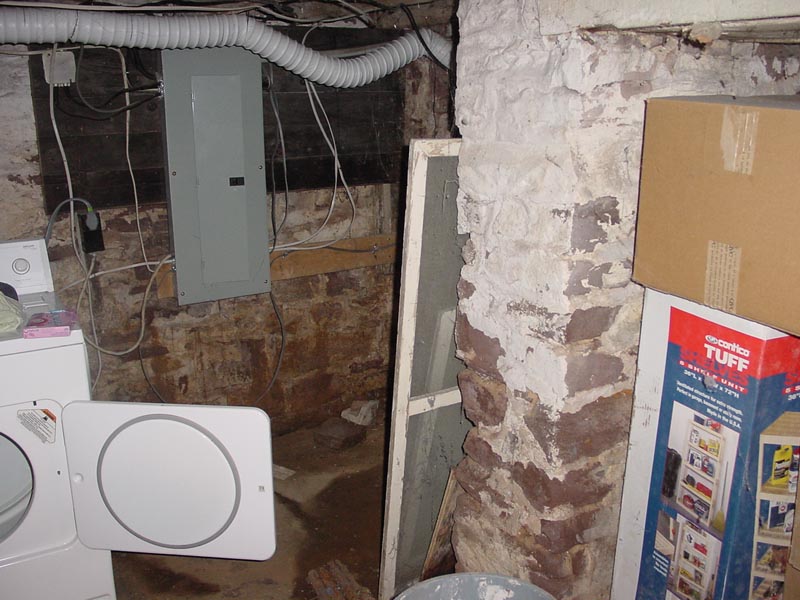 Is it piles of junk in a corner? Or is it a complex navigation path designed to break up the flow of the Main Hall? You decide! Other featurs to note: The Achilles heel for this house, the electrical service, is tastefully mounted in the background. Boxes and other materials are stored in the cubby. Free sculpture is visible on the floor. [ Look left at next to the washer | Back to by the stairs | Electric panel? | What's on the floor? | What are those boxes in the cubby there? ] |