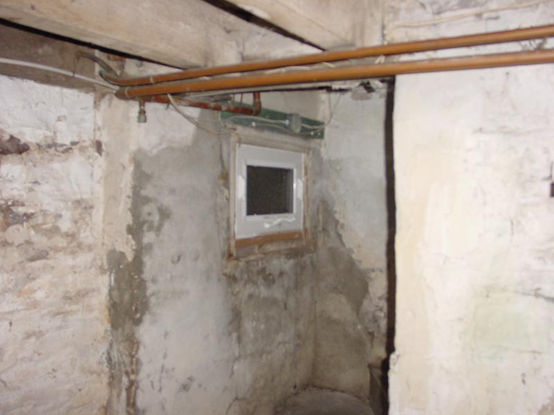 When turning around, remember to duck under those pipes and beams as you look to negotiate yoour footing on the wobbly steps. This is especially fun when carrying a basket of laundry. You can also take the time to observe the interesting construction of the wobbly steps. |
