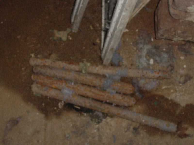 Tastefully placed on the floor as a rusting conversation piece is a collection of window-sash weights for what must have been a rather sizable window or two. It is unknown if this art will remain permanently displayed or eventually be used in ballistic experiments. [ Back ] |