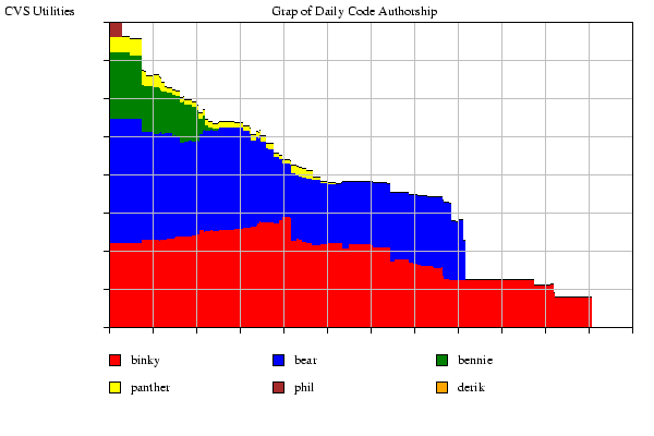 Success! I have gone from parsing a dummy set of CVS files directly to outputting a sandwich graph of overall code ownership over time. The code is HORRIBLY unoptimized at this point, but it does work!